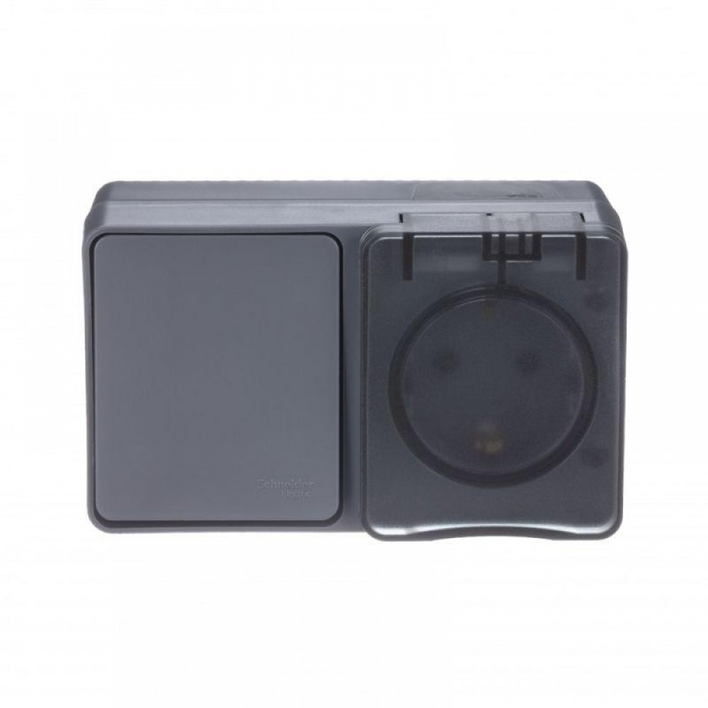 Блок ОП AtlasDesign PROFI IP54 (розетка 1-м 16А заземл. защ. шторки + 1-кл. выключатель 10А) антрацит SE ATN544070