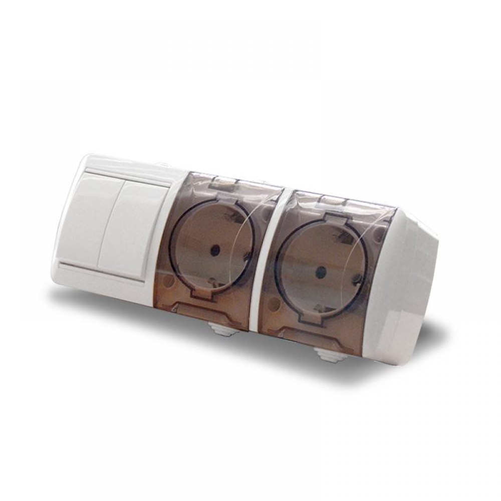 • Блок ОП Клио 2-кл. выкл. 10А + розетка 2-м 16А 250В с заземл. с прозр. крышкой бел. Universal К2240