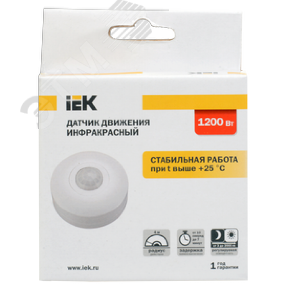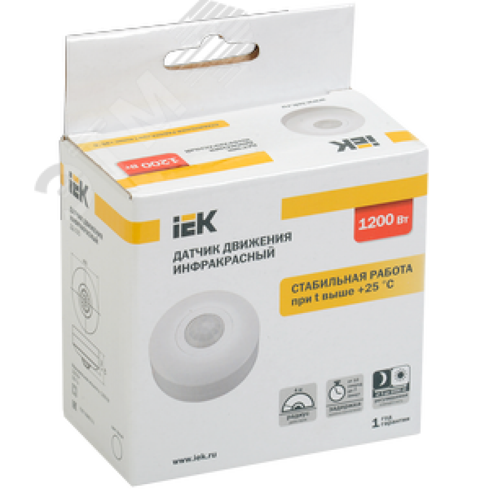 Технические характеристики Датчик движения ДД 025 белый, 1200 Вт, 360 градусов ,6М,IP20