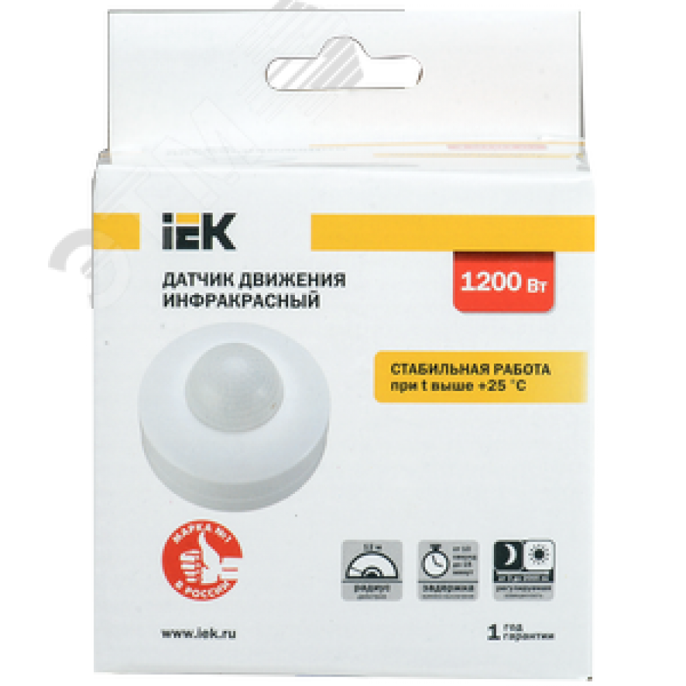| Гарантийный срок, мес60 | Дальность зоны обнаружения, м12 | Комплектациядатчик движения - 1 шт. |