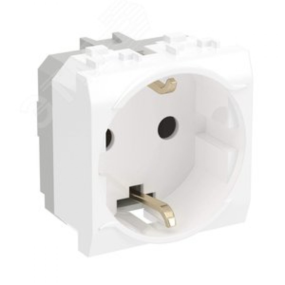 BRAVA Розетка 2 модуля с заземлением со шторками белая