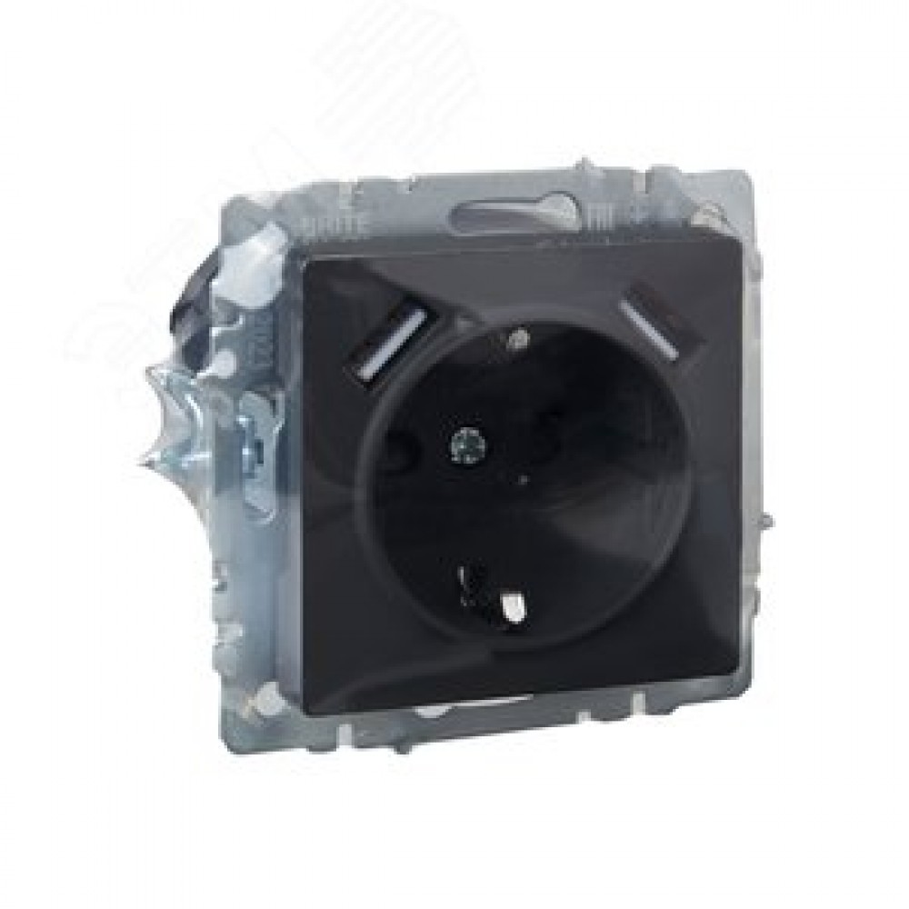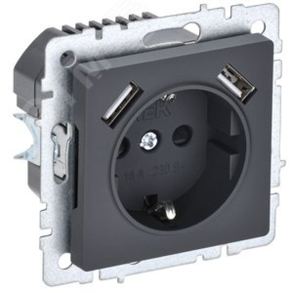 Технические характеристики BRITE Розетка 1 пост с заземлением с защитными шторками 16А с USB A+A 5В 3,1А РЮш10-2-БрГ графит