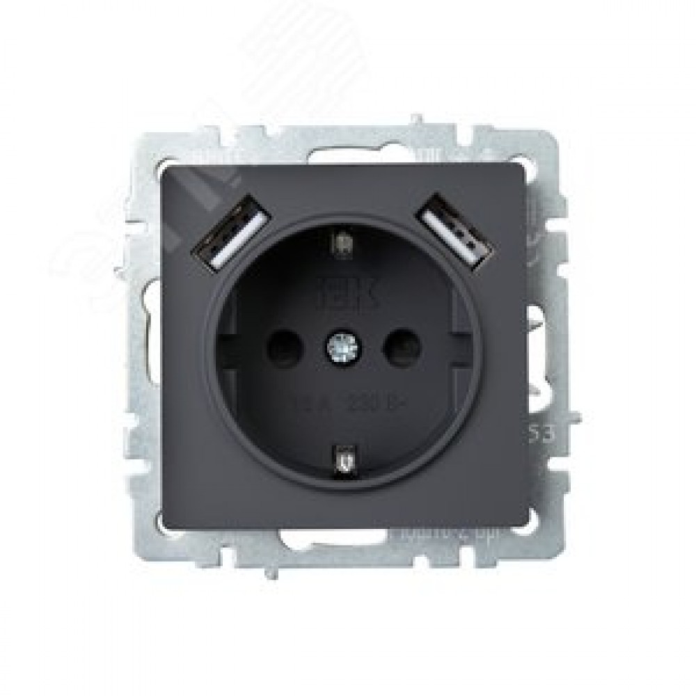 BRITE Розетка 1 пост с заземлением с защитными шторками 16А с USB A+A 5В 3,1А РЮш10-2-БрГ графит