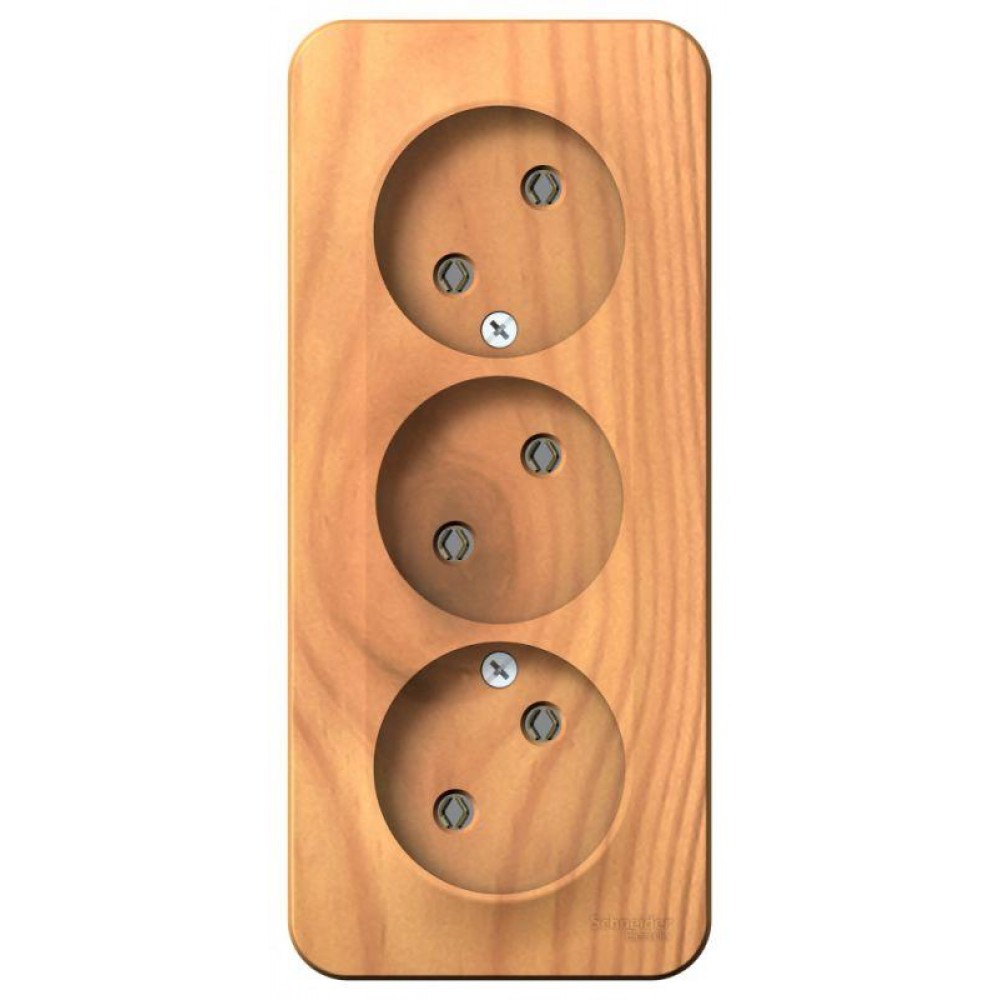 Розетка Systeme Electric (ранее Schneider Electric) BLANCA (ясень, открытой установки) трехместная, без шторок и заземления, с изолирующей пластиной предназначена для сетей до 250В, на ток до 16А. Трехместная розетка позволяет подключить три устройства в одном месте. Изделия цвета Ясень обладают уникальным рисунком, напоминающим древесный сруб. Она изготовлена из ABS-пластика, проста в установке и удобна в применении.