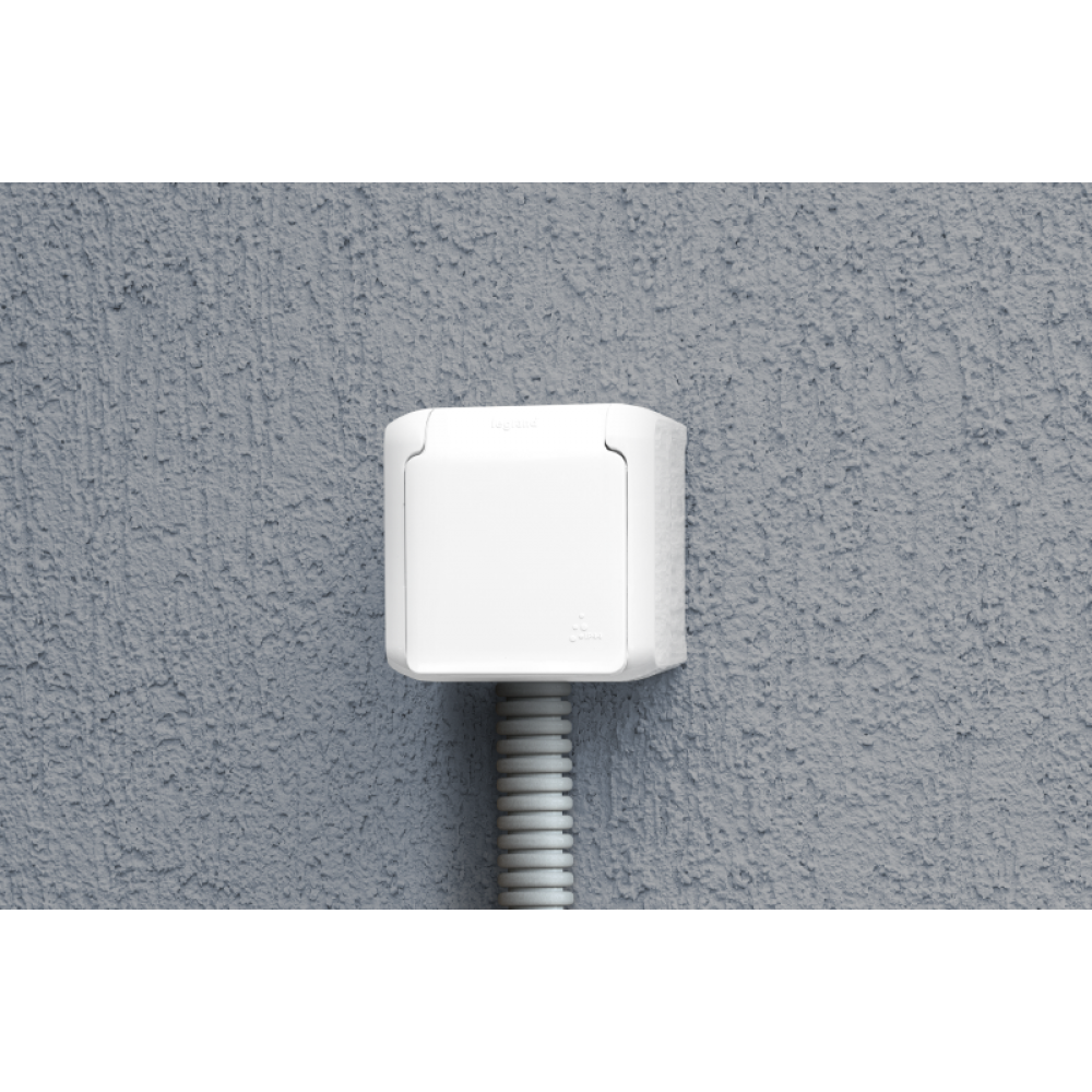 Розетка 1-м ОП Quteo 16А IP44 250В 2P+E с заземл. защ. шторки с крышкой бел. Leg 782321
