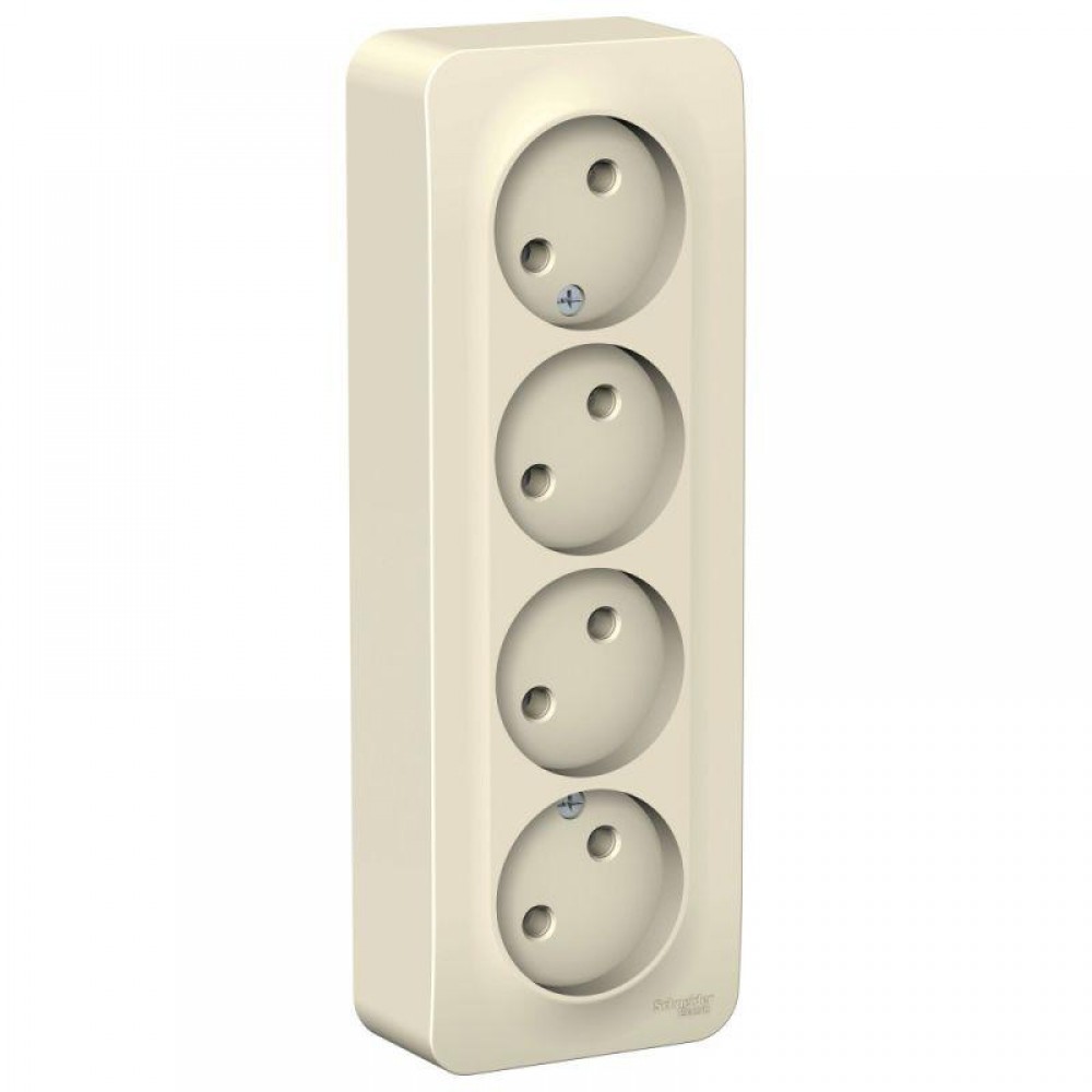 Розетка Systeme Electric (ранее Schneider Electric) BLANCA (молочный, открытой установки) четырехместная, без шторок и заземления, с изолирующей пластиной предназначена для сетей до 250В, на ток до 16А. Четырехместная розетка позволяет подключить четыре устройства в одном месте. Она изготовлена из ABS-пластика, проста в установке и удобна в применении.