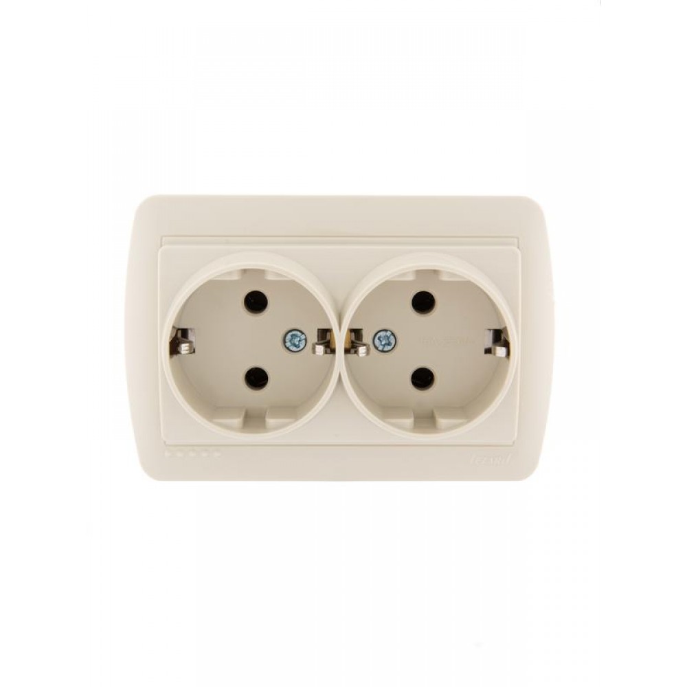 Розетка 2-м ОП Demet 16А IP20 с заземл. закрыт. корпус керамика крем. LEZARD 711-0300-127