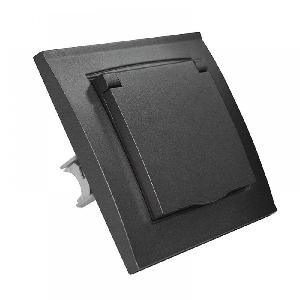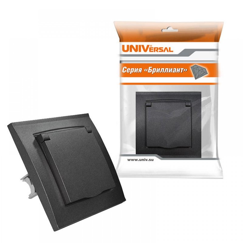 • Розетка 1-м СП Бриллиант 16А IP20 с заземл. с крышкой в сборе графит Universal 7947649-Gr