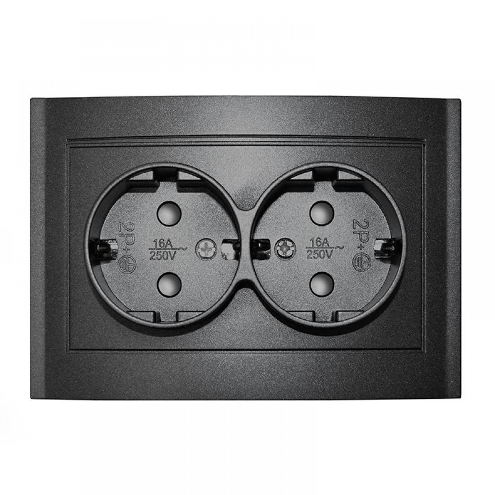 Розетка 2-м СП Бриллиант 16А IP20 с заземл. защ. шторки в сборе графит Universal 7947540-Gr
