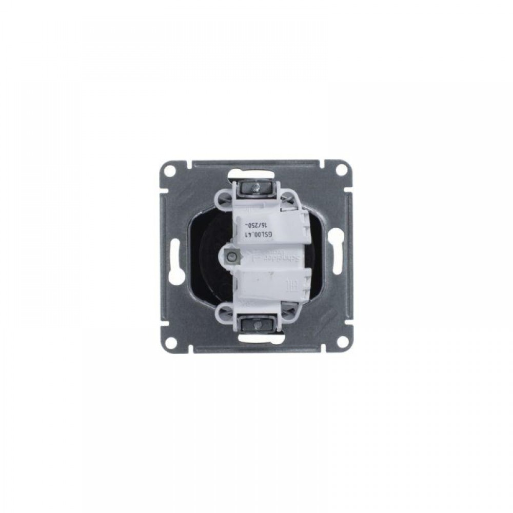 Механизм Systeme Electric (ранее Schneider Electric) серии Glossa (цвет шоколад) розетки одинарной без заземления и без шторок подходит для сетей 250 В, на ток 16 А.