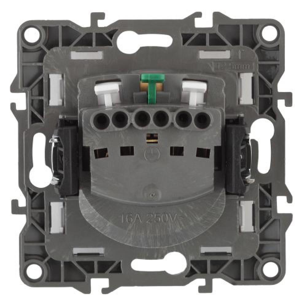 Розетка с заземлением серии Эра 12 скрытой установки механизм цвет чёрный 12-2101-06. Номинальные хар-ки 16А 250В . Сделана из поликарбоната, оснащёна автоматическими клеммами для быстрой и надёжной фиксации жил кабеля в мех аниме. Парные клеммы обеспечивают соединение шлейфом. Монтаж в подрозетник производится и на лапки, и на винты. Рамки приобретаются отдельно. Рамки Эра 12: 1 пост 12-5001-хх, 2 поста 12-5002-хх, 3 поста 12-5003-хх, 4 поста 12-5004-хх, 5 постов 12-5005-хх. Рамки Эра 12 Сатин: 1 пост 12-5101-хх, 2 поста 12-5102-хх, 3 поста 12-5103-хх, 4 поста 12-5104-хх, 5 постов - 12-5105-хх (хх - код цвета: 01-белый, 02-слоновая кость, 03-алюминий, 04-шампань, 05-антрацит, 06-чёрный, 07-ольха(белёный дуб-сатин), 08-вишня, 09-дуб, 10-венге, 11-сосна, 21-жёлтый, 22-оранжевый, 23-красный, 24-охра, 25-бордо, 26-лайм, 27-зелёный, 28-голубой, 29-синий).