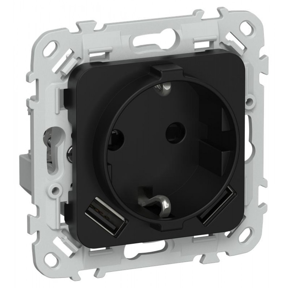 Технические характеристики Розетка 1-м СП FLITE РСЮша11-1-ФлЧ 16А с USB A+A 3.1А с заземл. с защ. шторками безвинтовое крепление механизм черн. IEK FI-R14-16-1-U21-D31-K02