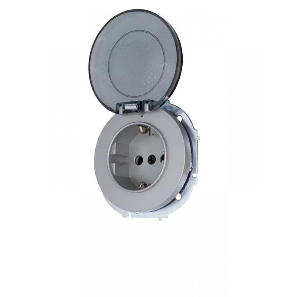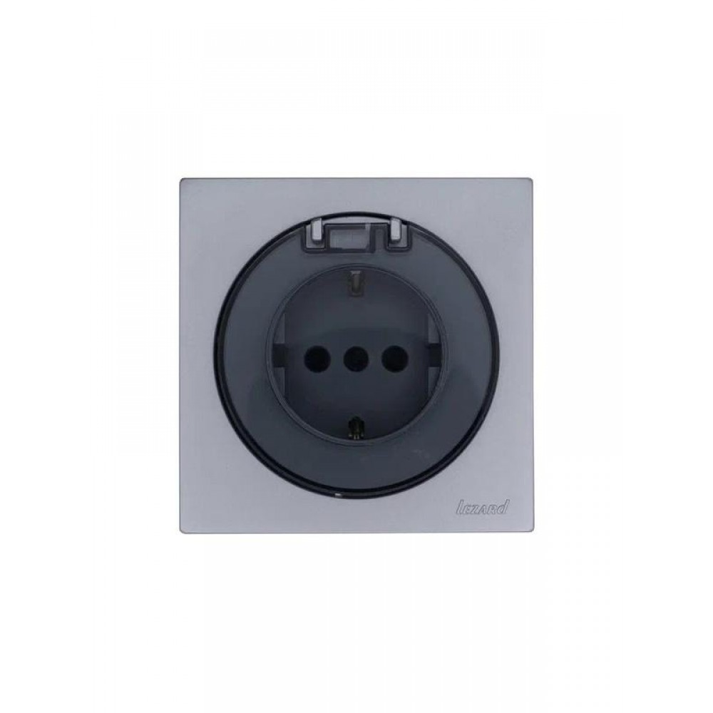 • Розетка 1-м СП OSEN с заземл. с крышкой ПБТ механизм сер. матов. LEZARD 743-7488-123B