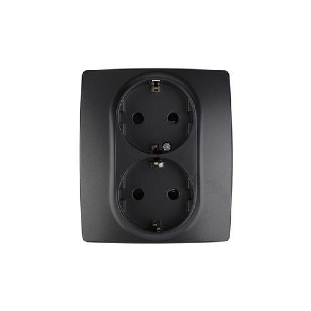 Розетка 2-м СП Эра12 12-2104-05 16А IP20 16AX 250В 2х2P+E Schuko защ. шторки антрацит Эра Б0014703