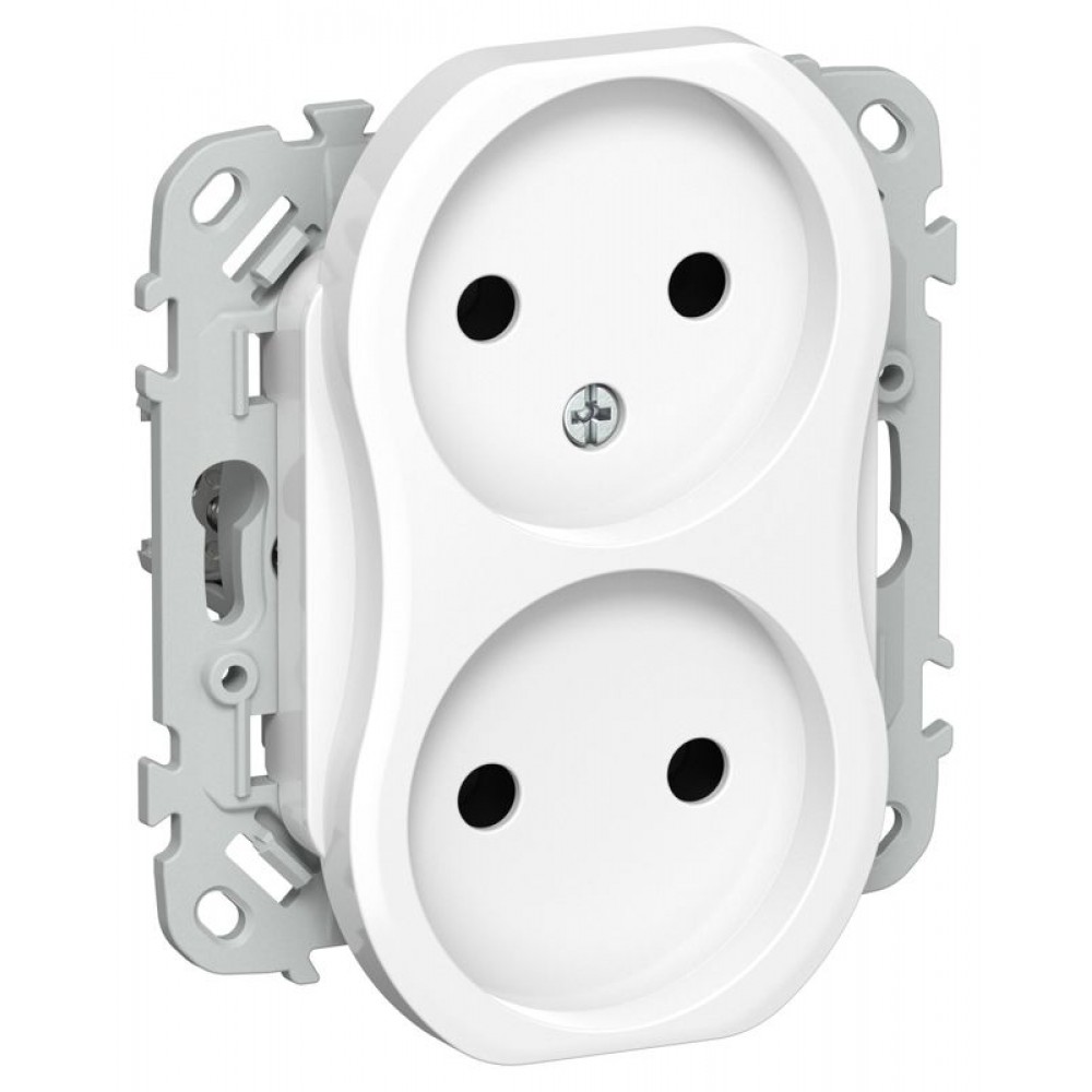 Технические характеристики Розетка 2-м СП FLITE РС02-1-ФлБ 10А без заземл. без защ. шторок безвинтовое крепление механизм бел. IEK FI-R20-10-1-K01