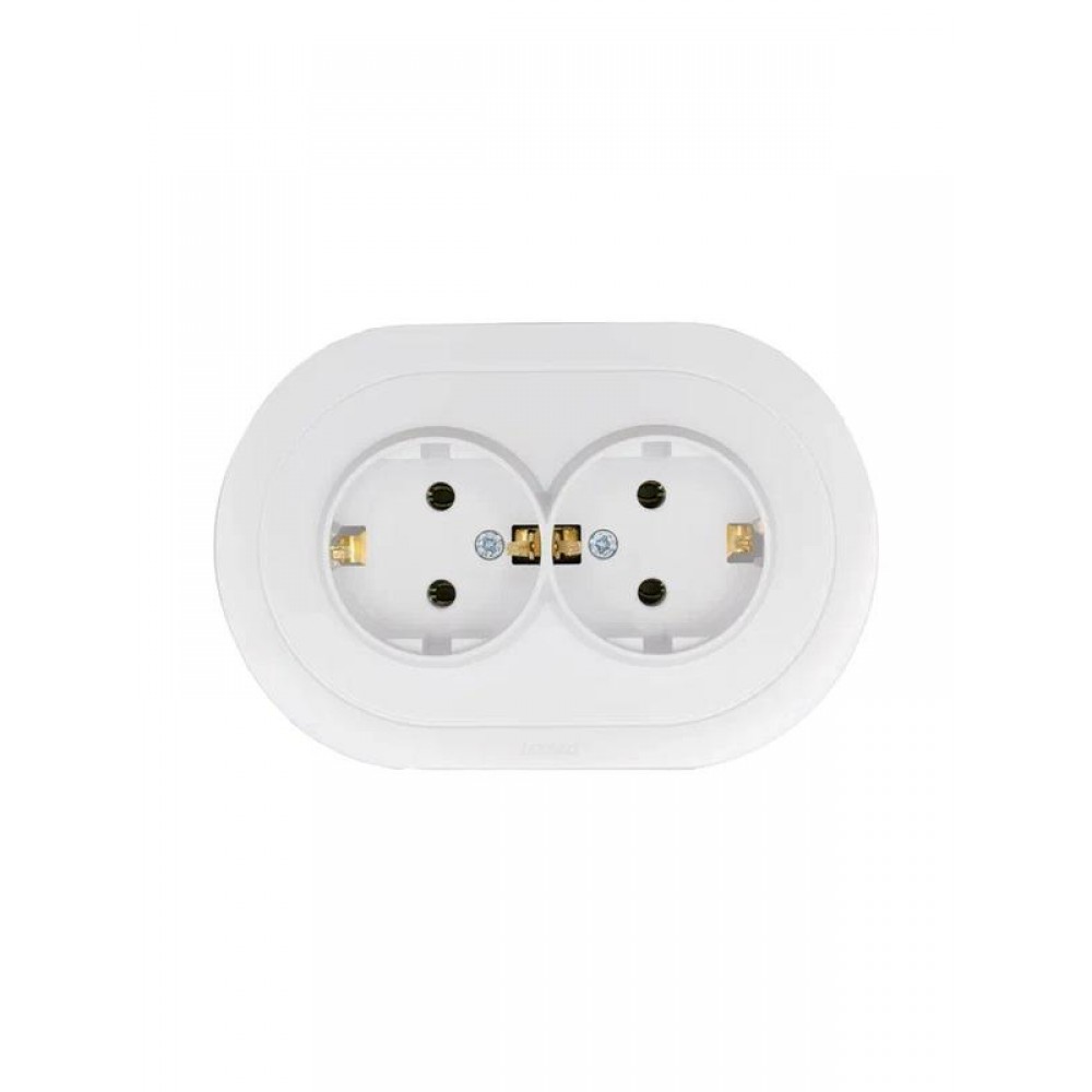 • Розетка 2-м СП OSEN с заземл. ПБТ круглая механизм бел. LEZARD 744-0200-127B