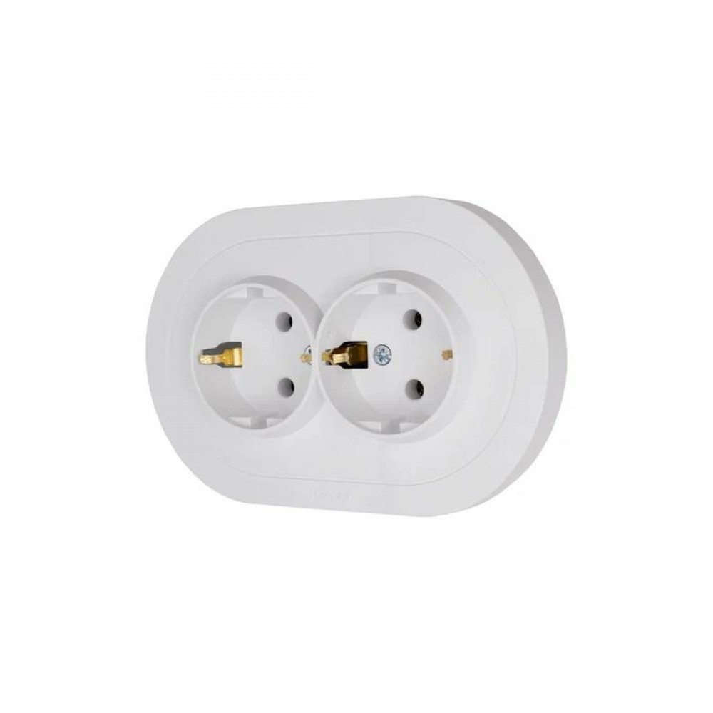 Розетка 2-м СП OSEN с заземл. ПБТ круглая механизм бел. LEZARD 744-0200-127B