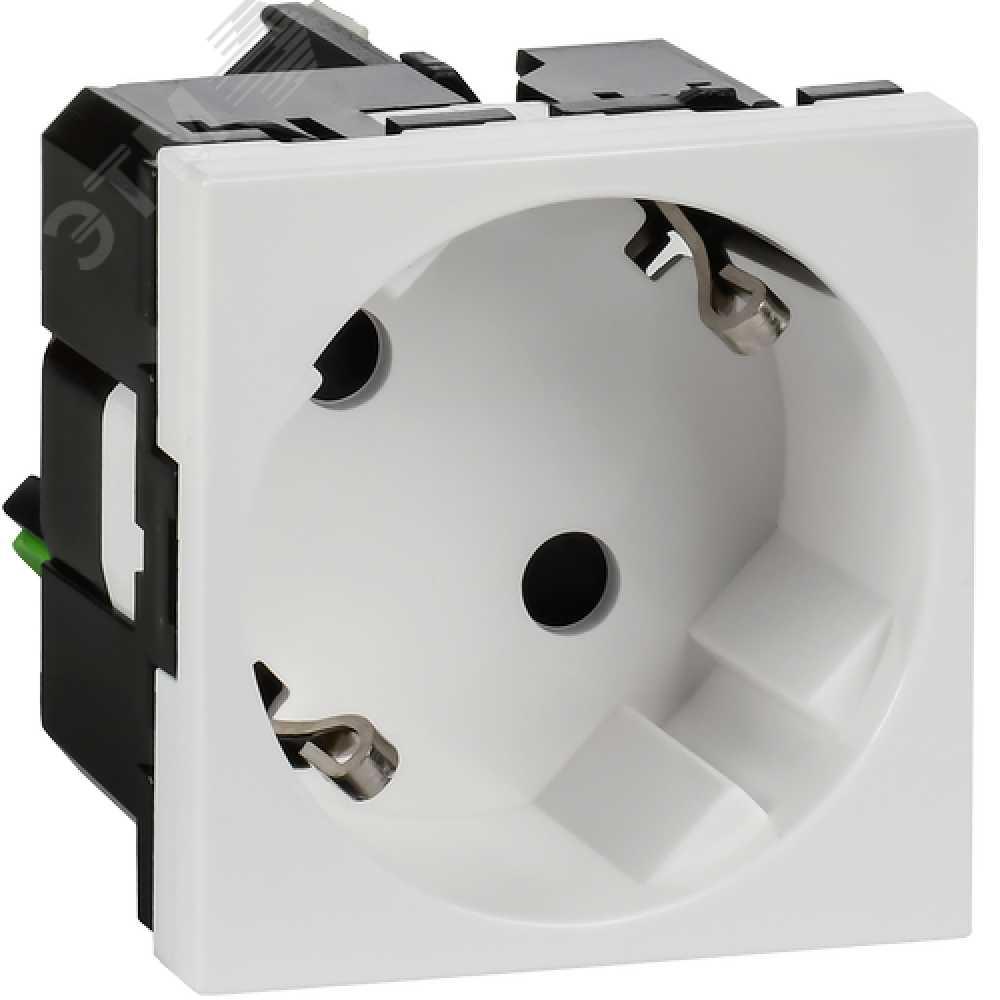 • Розетка 45град с заземляющим контактом защитной шторкой и безвинтовым зажимом (2 модуля) белая