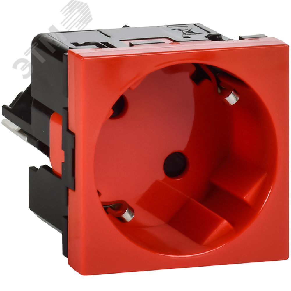 Розетка 45град с заземляющим контактом защитной шторкой и безвинтовым зажимом (2 модуля) красная