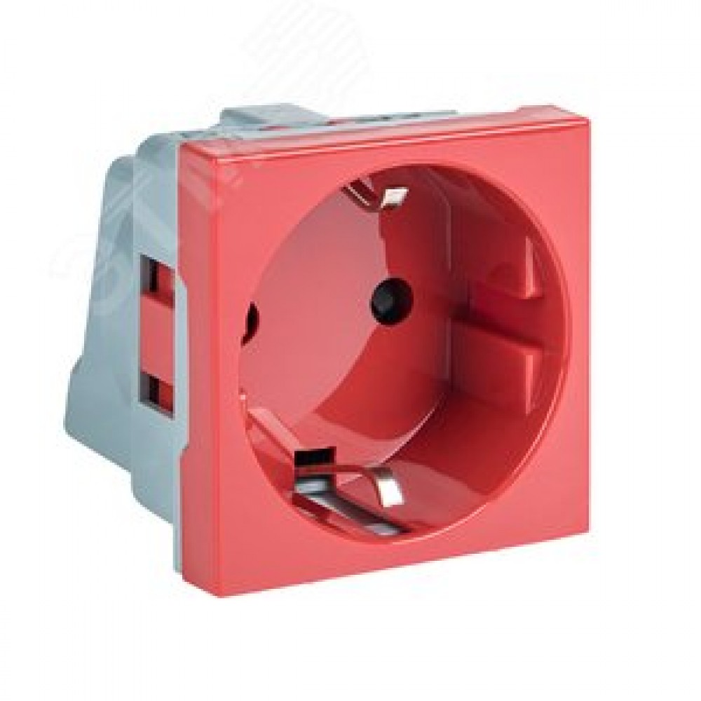 • Розетка 45х45 (2 модуля), с заземлением, красная, прямая
