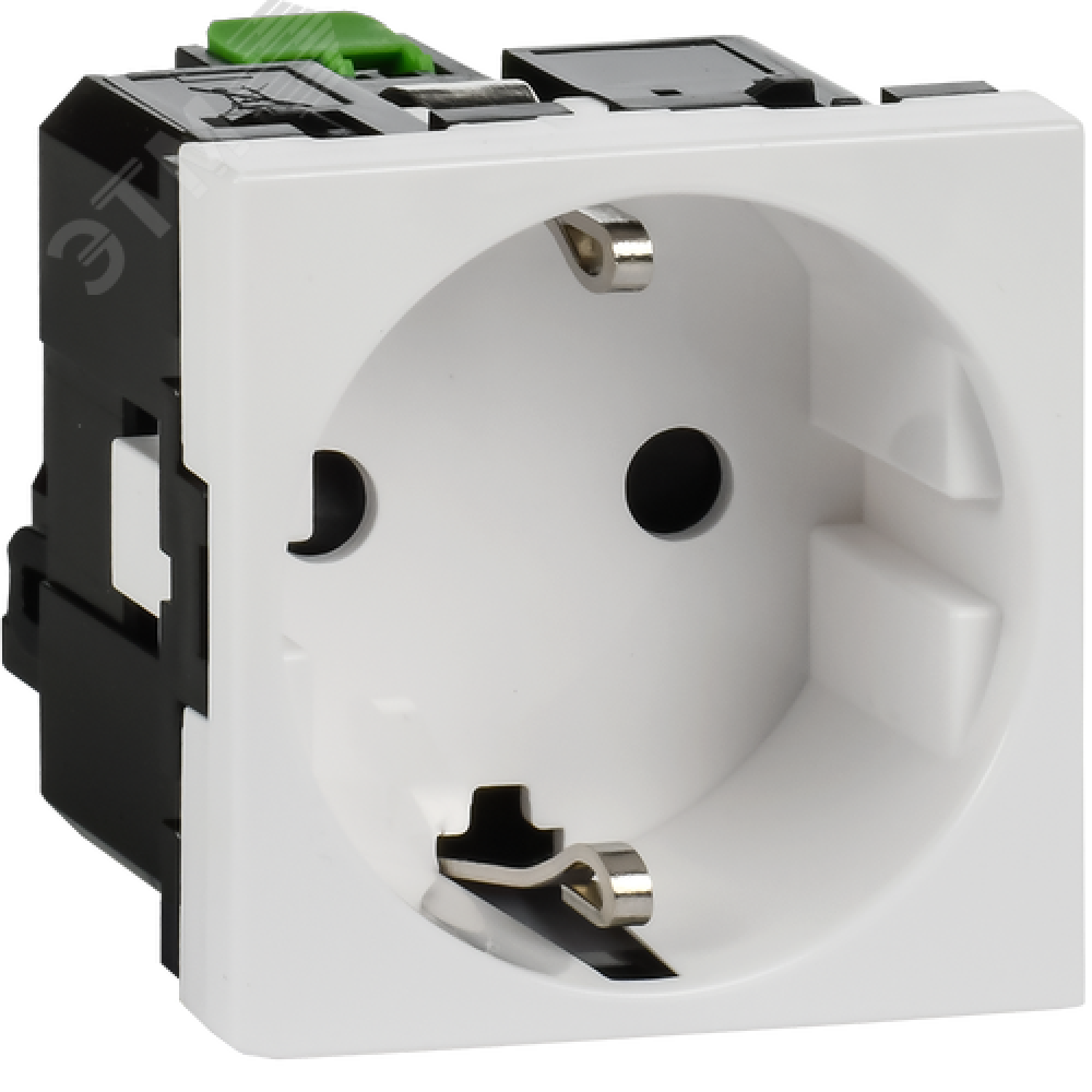 Технические характеристики Розетка с заземляющим контактом защитной шторкой и безвинтовым зажимом (2 модуля) белая