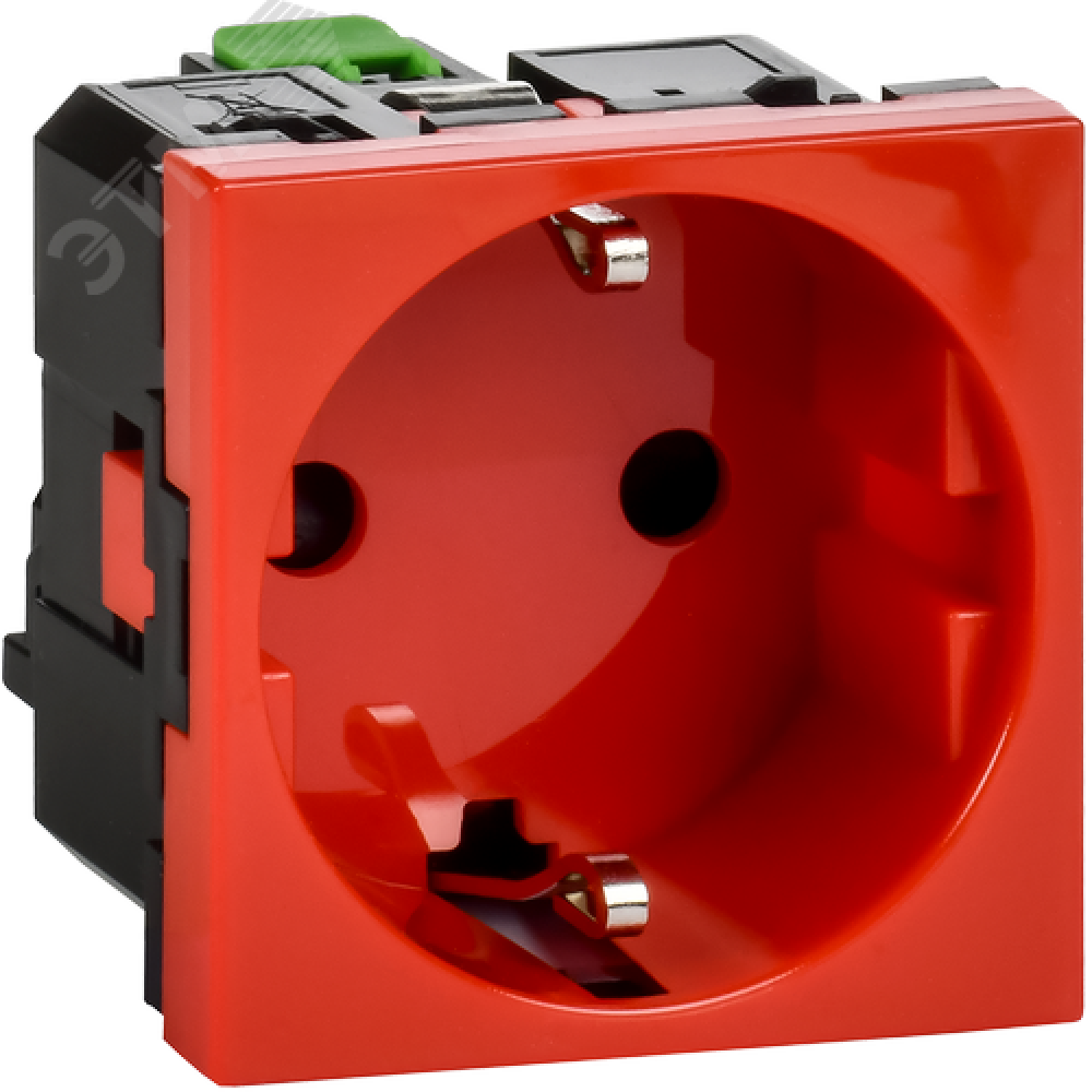 Розетка с заземляющим контактом защитной шторкой и безвинтовым зажимом (2 модуля) красная