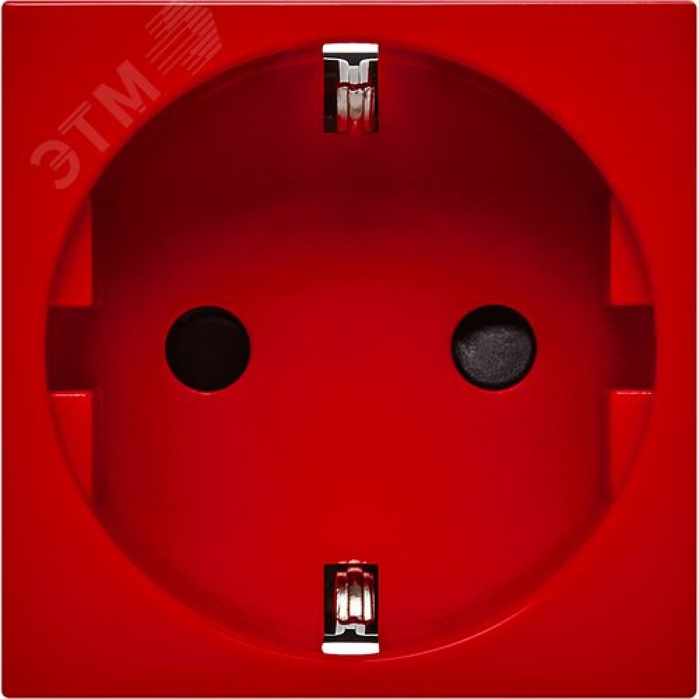 Розетка с заземляющим контактом защитной шторкой и винтовым зажимом (2 модуля) красная