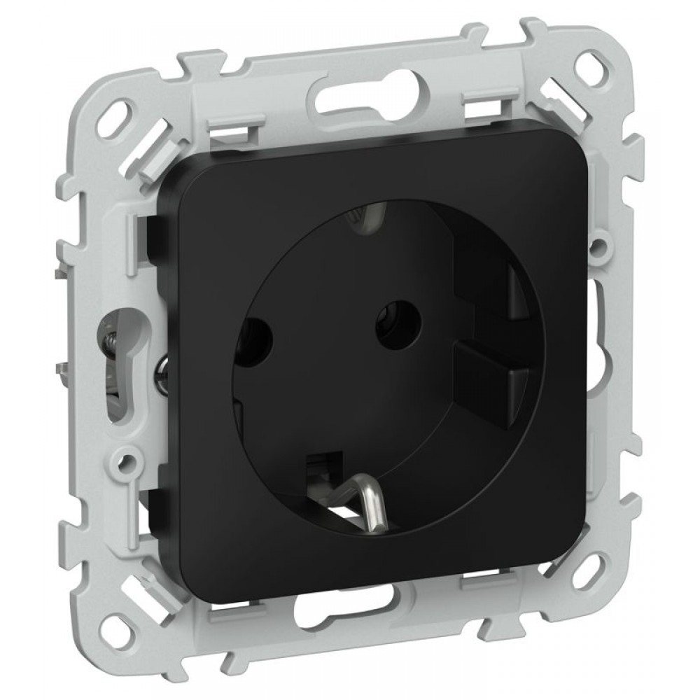 Розетка СП FLITE РС11-1-ФлЧ 16А с заземл. без защ. шторок безвинтовое крепление механизм черн. IEK FI-R11-16-1-K02