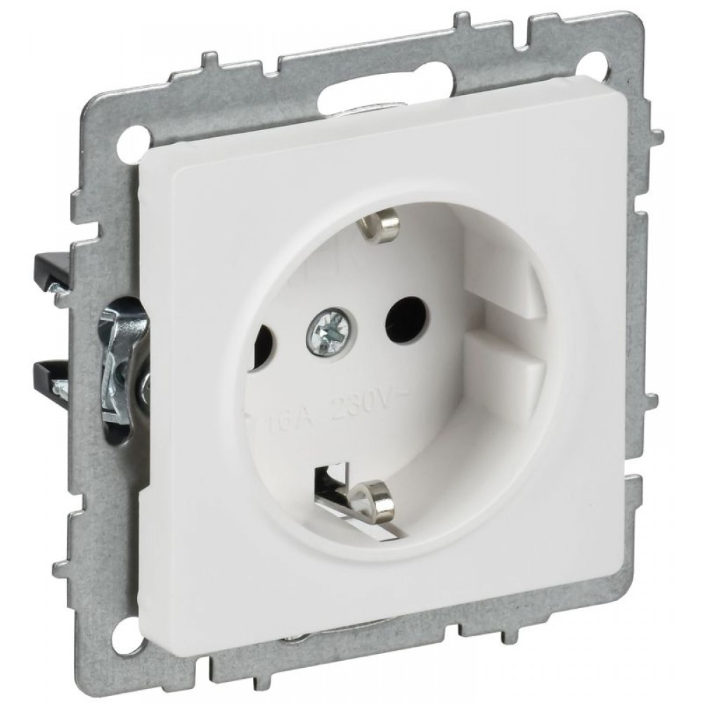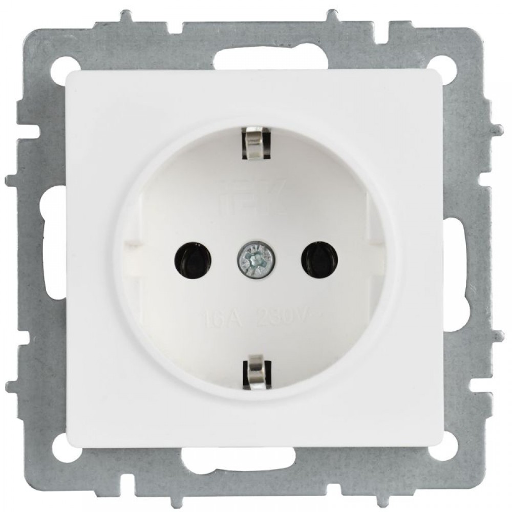 Розетка BRITE РС11-1-0-БрАБ 16А с заземл. без защ. шторок механизм арктич. бел. IEK BR-R11-16-K91
