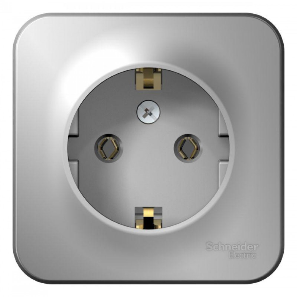 Розетка Systeme Electric (ранее Schneider Electric) BLANCA (алюминий, открытой установки) одноместная с заземлением, без шторок, предназначена для сетей до 250В, на ток до 16А. Заземление обеспечивает безопасность при косвенном прикосновении. Она изготовлена из ABS-пластика, проста в установке и удобна в применении.