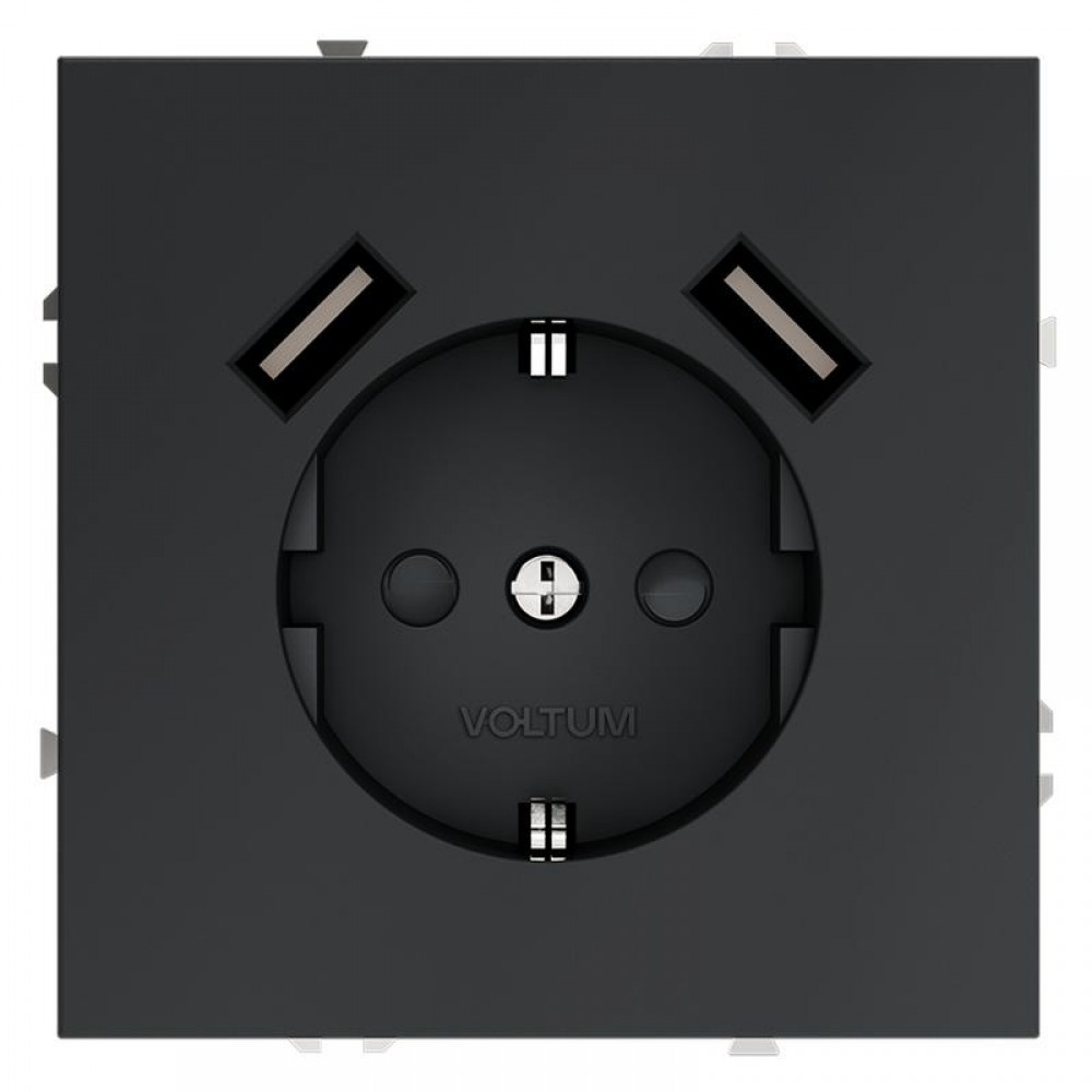 Розетка 1-м СП S70 16А с USB A+A с заземл. защ. шторки механизм графит Voltum VLS040407