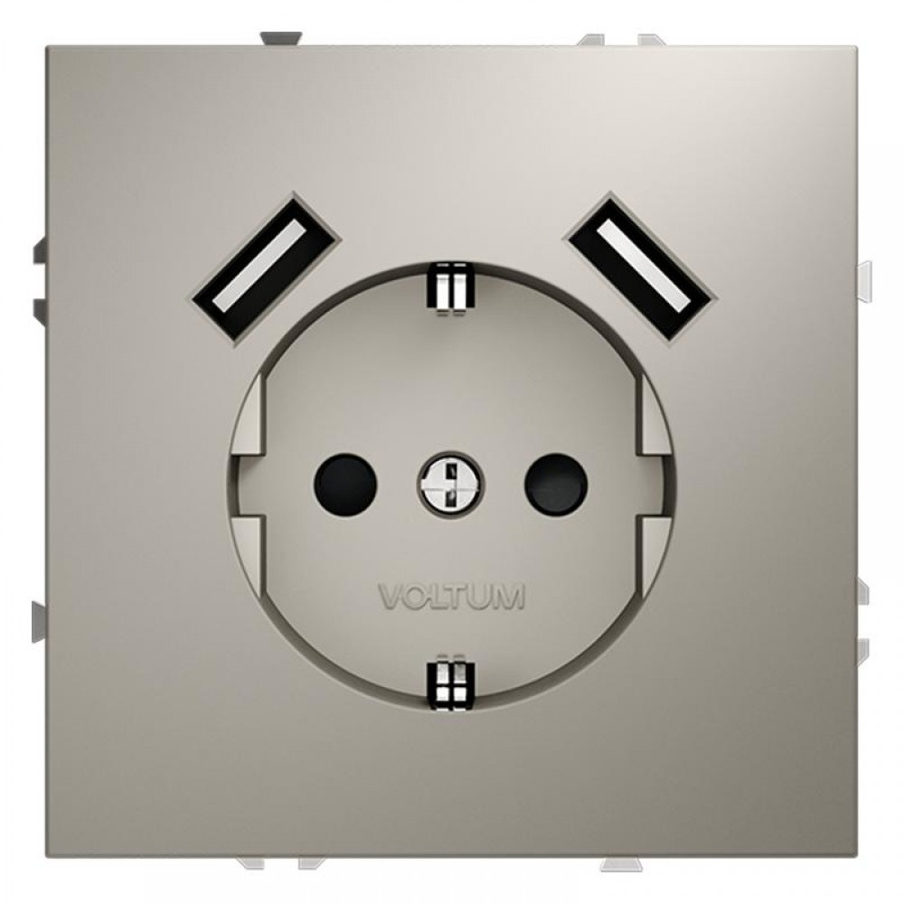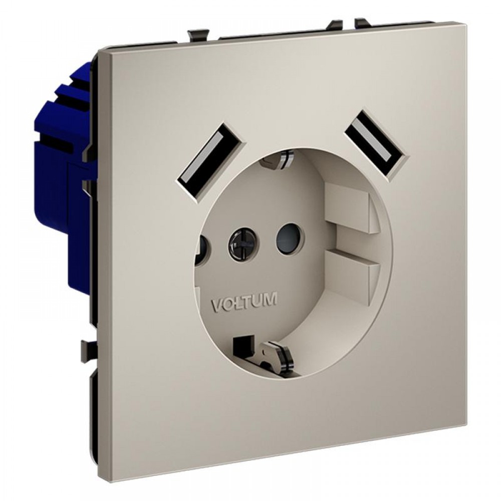 Технические характеристики Розетка 1-м СП S70 16А с USB A+A с заземл. защ. шторки механизм кашемир Voltum VLS040403