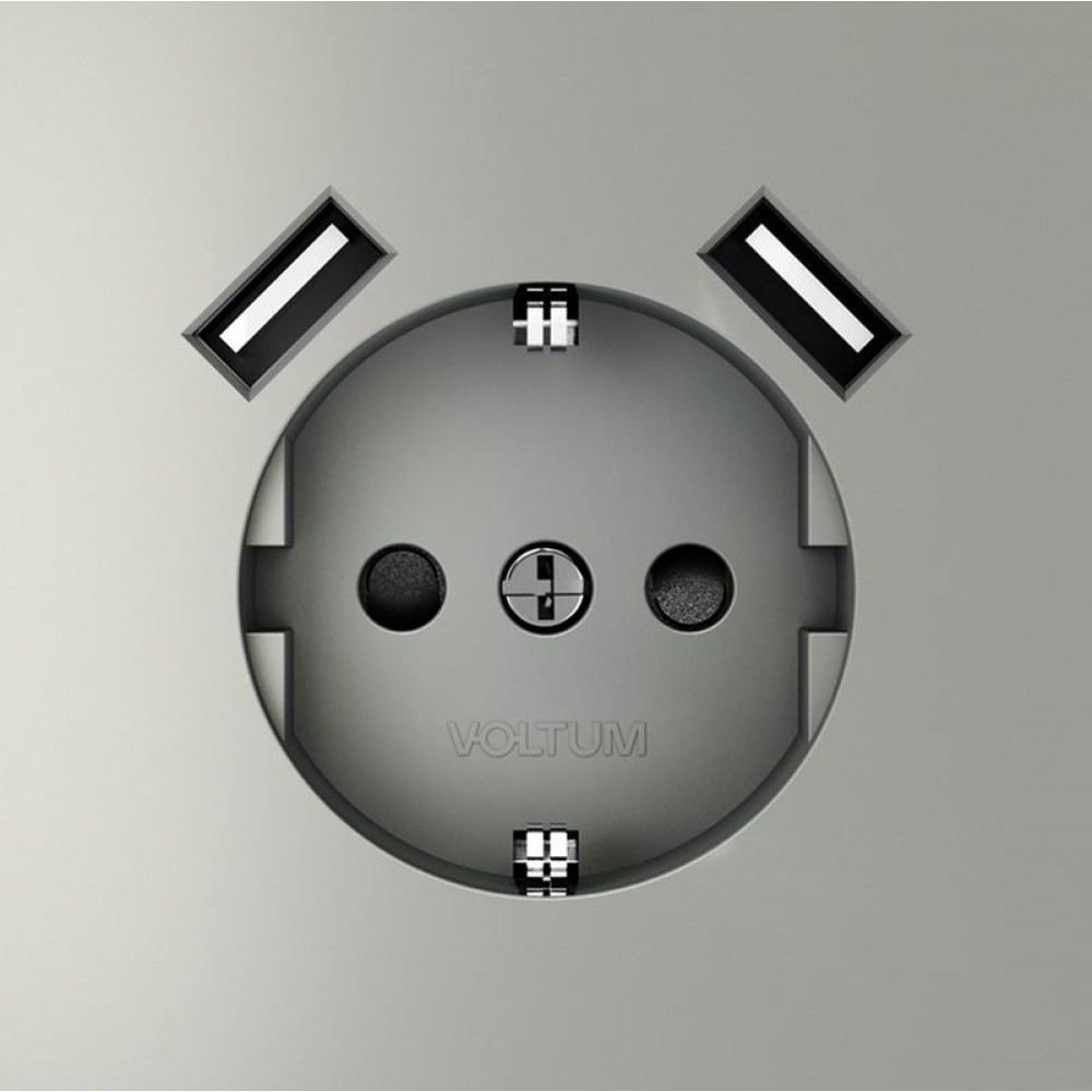 Технические характеристики Розетка 1-м СП S70 16А с USB A+A с заземл. защ. шторки механизм сталь Voltum VLS040405