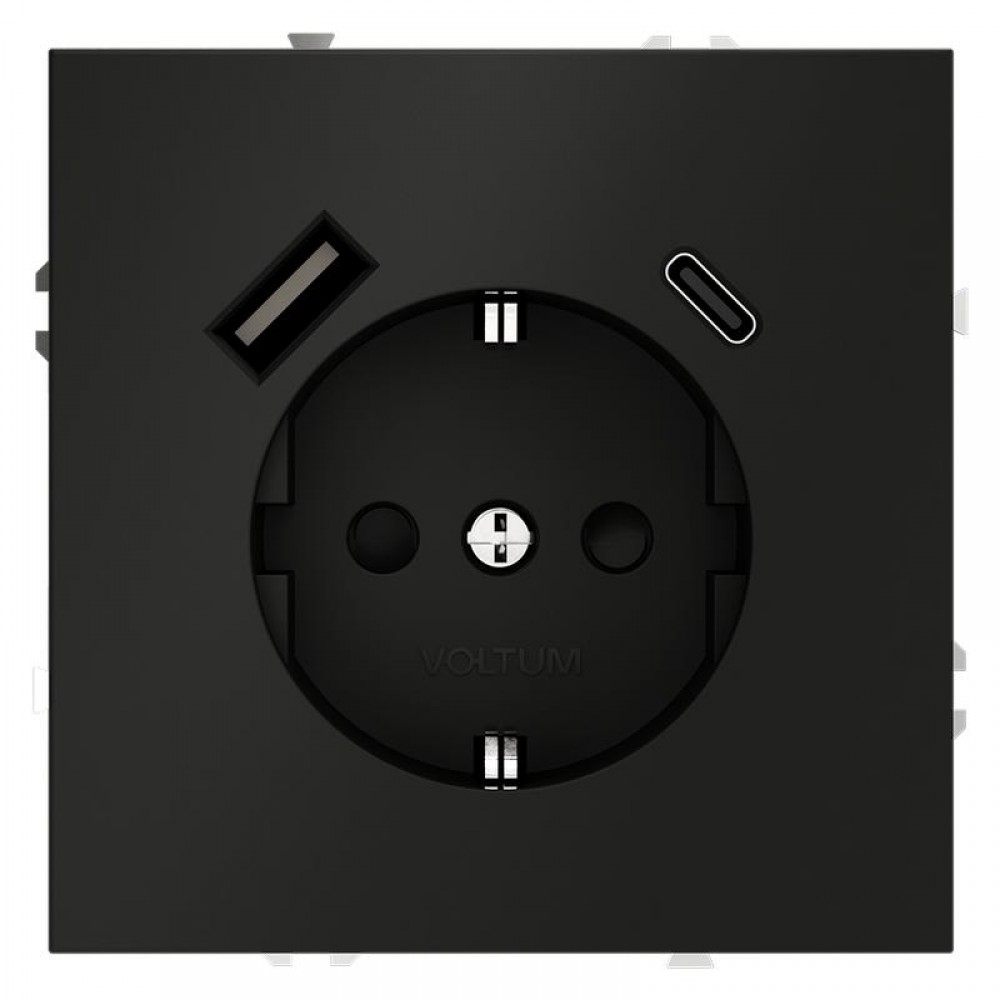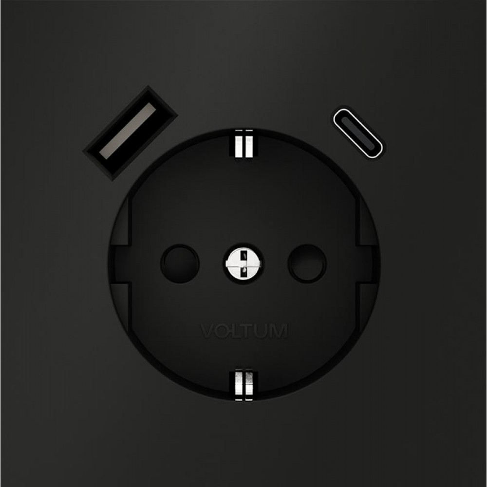 Розетка 1-м СП S70 16А с USB A+С с заземл. защ. шторки механизм черн. матов. Voltum VLS040508