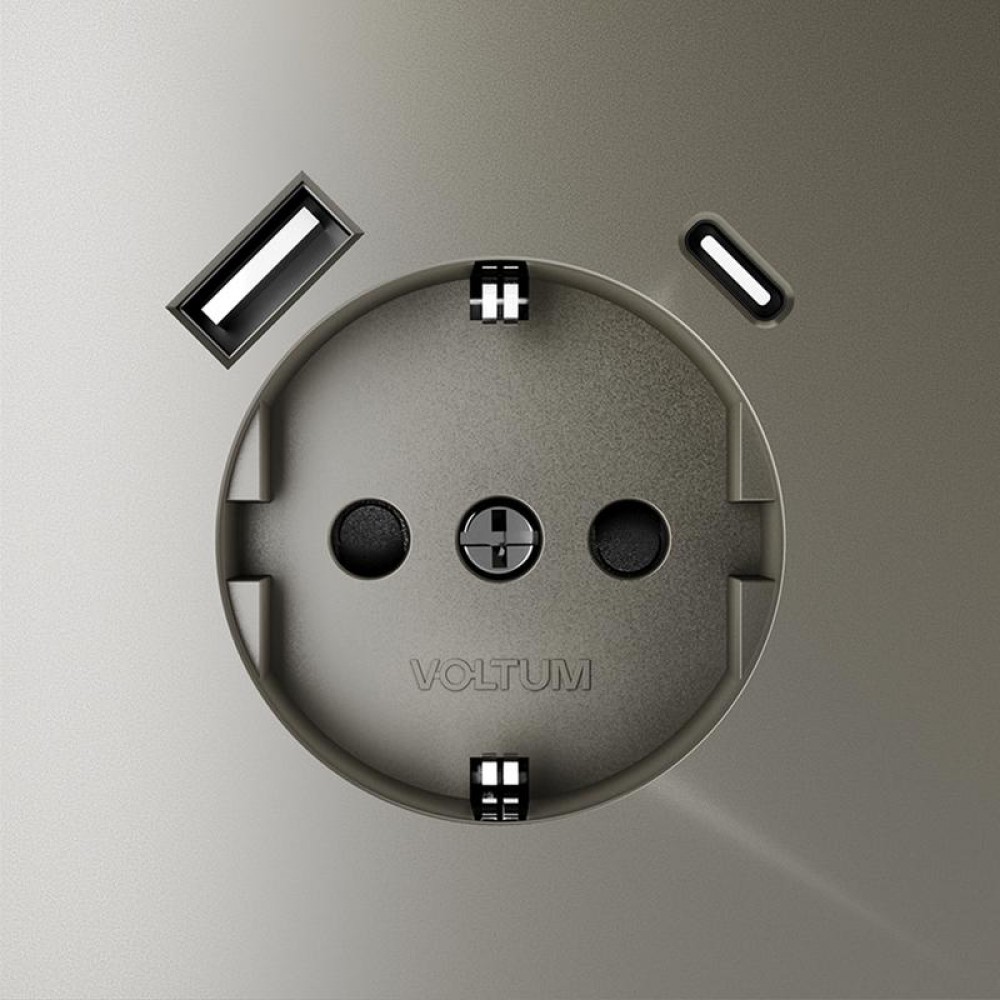Розетка 1-м СП S70 16А с USB A+С с заземл. защ. шторки механизм шелк Voltum VLS040504