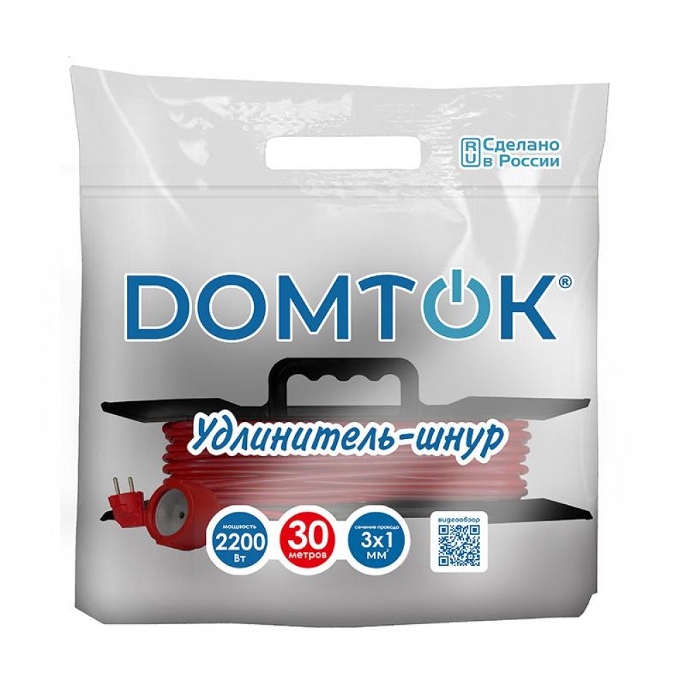 Удлинитель-шнур на рамке 1х30м с заземл. 10А IP20 2.2кВт ПВС 3х1 DOMTOK 2480