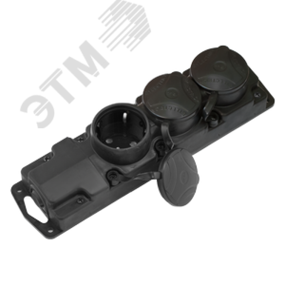 Розетка тройная переносная каучук с защитными крышками 2P+E 1х16А IP45