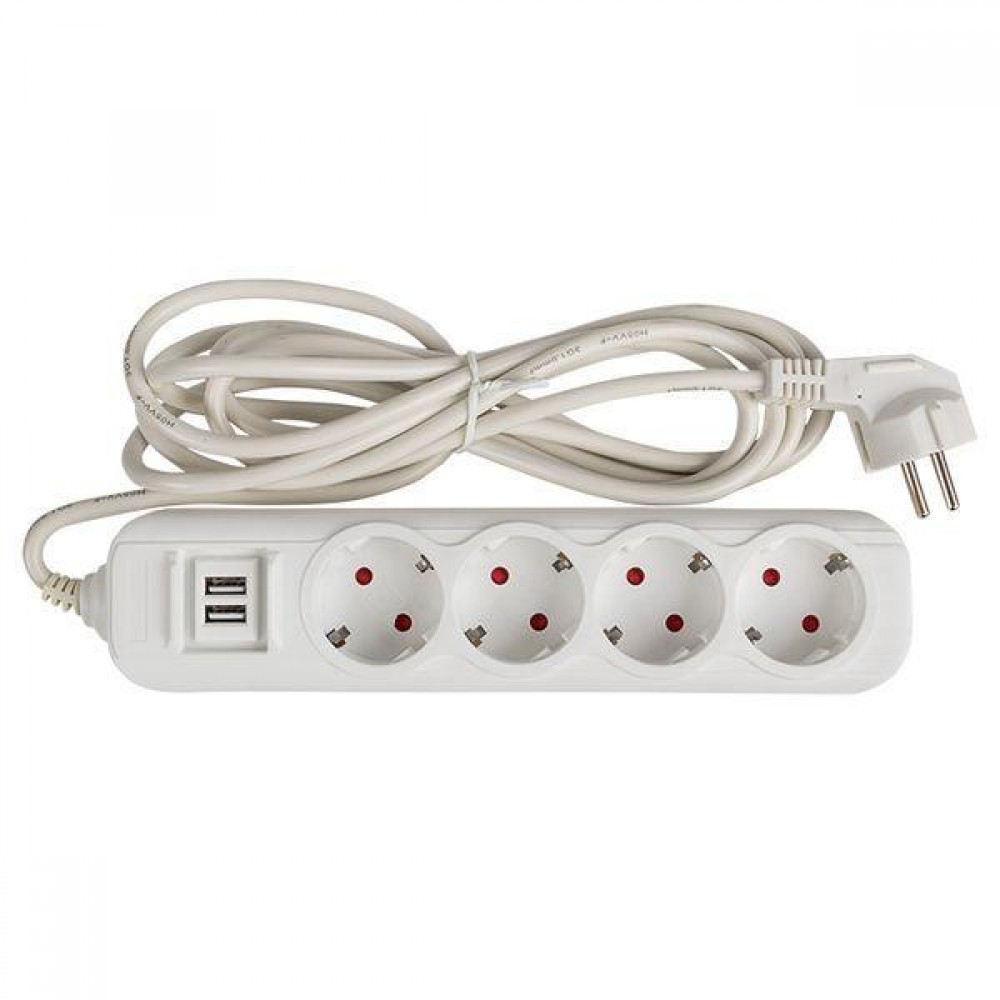 Удлинитель 4х3м 16А IP20 Эксперт 3.5кВт 2хUSB 2.1А ПВС 3х1 PROxima EKF UBA16-2USB-4-03i