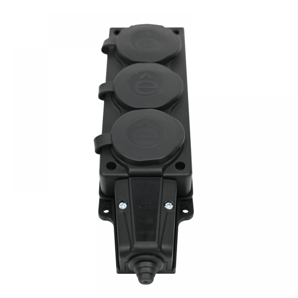 Колодка каучуковая MultiSet (Systeme Electric) на 3 поста (2К+З) 16А/250В. Предназначена для сборки удлинителей нужной длины. Обладает повышенной прочностью и степенью пылевлагозащиты IP44. Имеет 4 отверстия для крепления на поверхность и ещё одно для подвешивания. Температурный диапазон эксплуатации – от -30 до +45 °С.