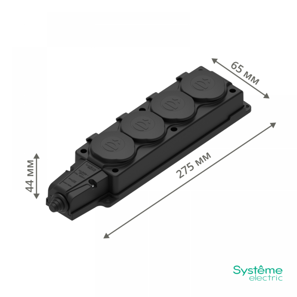 Колодка каучуковая MultiSet (Systeme Electric) на 4 поста (2К+З) 16А/250В. Предназначена для сборки удлинителей нужной длины. Обладает повышенной прочностью и степенью пылевлагозащиты IP44. Имеет 4 отверстия для крепления на поверхность и ещё одно для подвешивания. Температурный диапазон эксплуатации – от -30 до +45 °С.