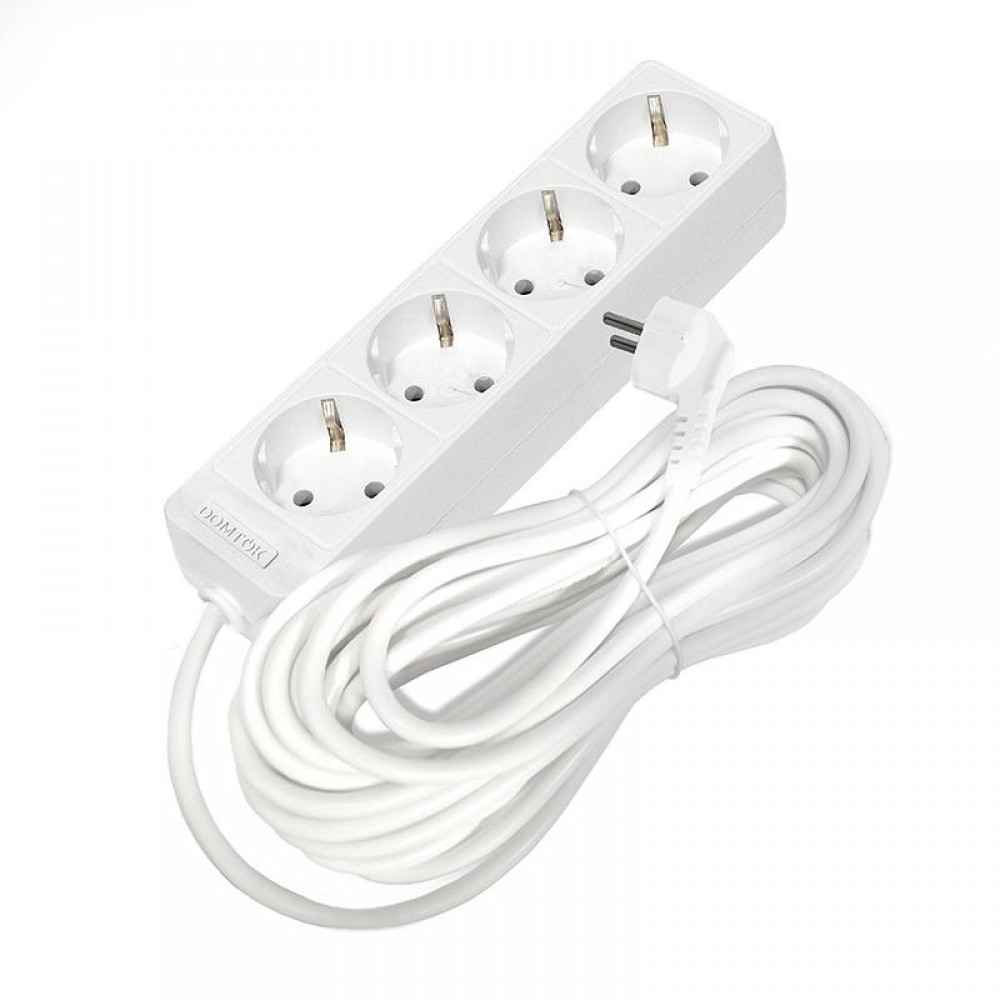 Удлинитель 4х10м с заземл. 16А IP20 3.5кВт ПВС 3х1 бел. DOMTOK 2395