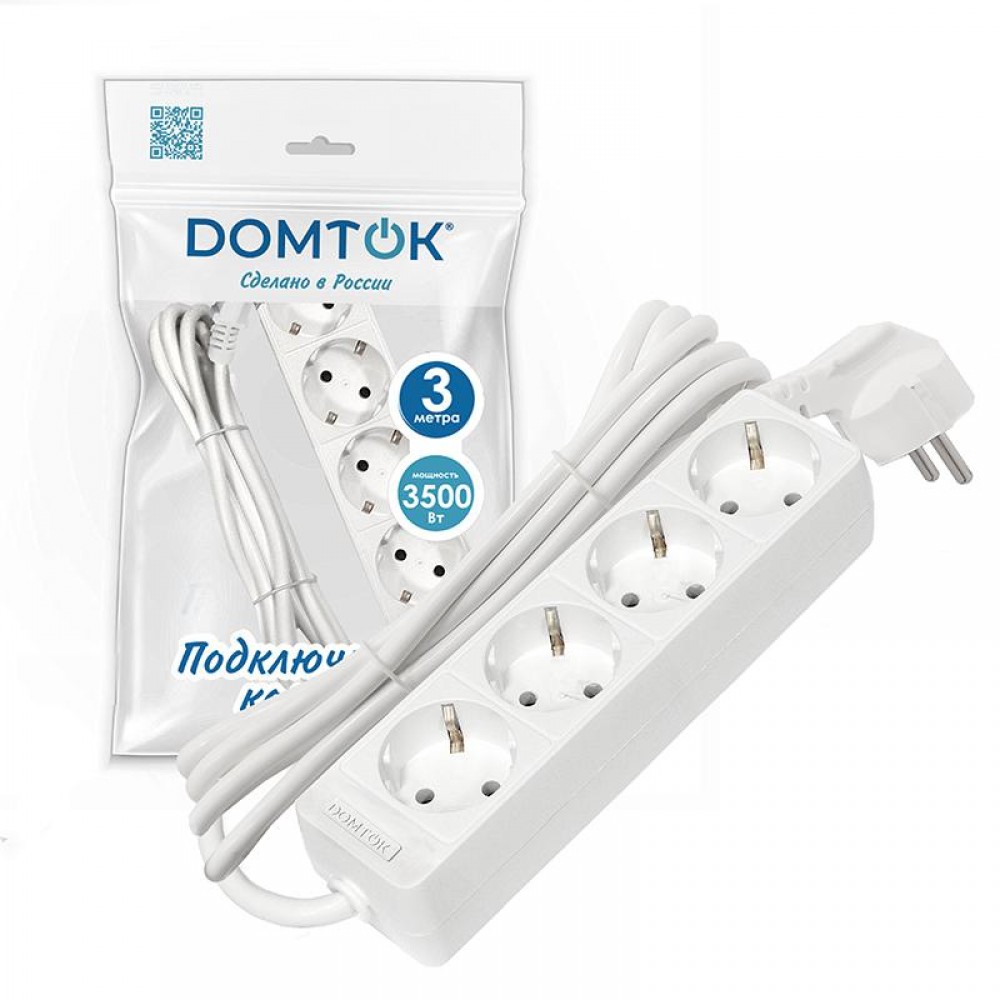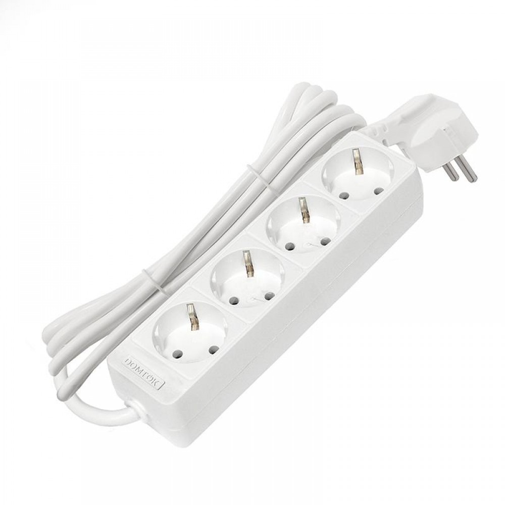 Удлинитель 4х3м с заземл. 16А IP20 3.5кВт ПВС 3х1 бел. DOMTOK 2396