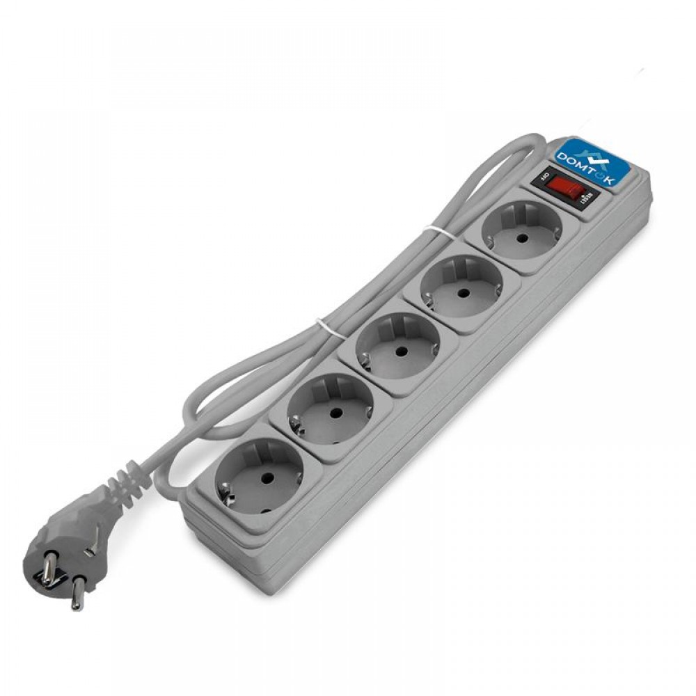 Удлинитель с сетевым фильтром 5х3м с заземл 10А IP20 2.2кВт ПВС 3х1 с выкл. сер. DOMTOK 2533