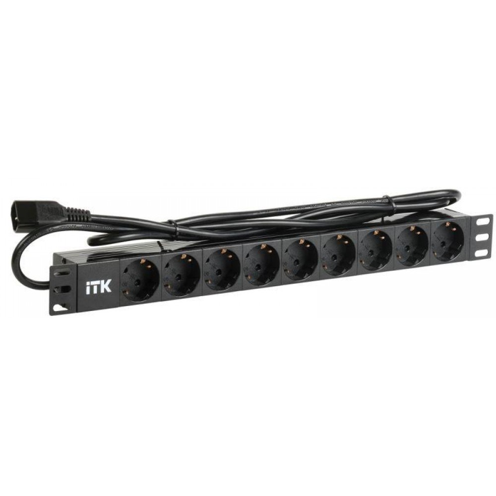 Блок розеток 9 мест PDU (немец. станд.) DIN 49440 ПВХ профиль 1U шнур 2м; вилка IEC 320 C14; черн. ITK PH22-9D2-P