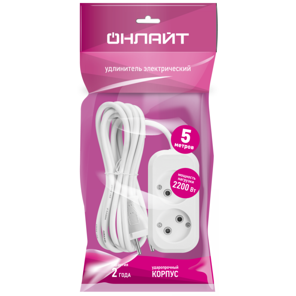 Удлинитель 2х5м без заземл. 10А IP20 90505 OPE-S-02-500-X-2х1 ОНЛАЙТ 90505
