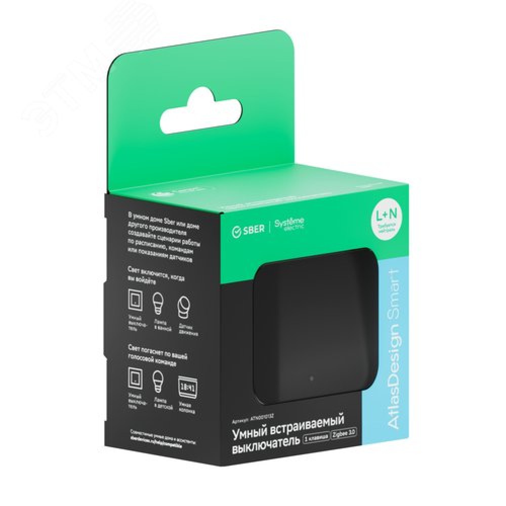 Технические характеристики ATLASDESIGN SMART 1-кл. ВЫКЛЮЧАТЕЛЬ с подсв., Zigbee, сх.1, L+N, 10А, мех., КАРБОН