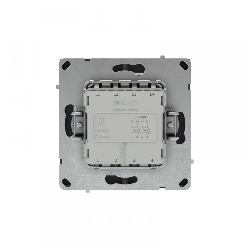 Двухклавишный инвертор применяется для управления двумя контурами освещения из 3 мест. Предназначен для скрытого монтажа в стену. Характеристики устройства: номинальное напряжение 250 В, номинальный ток 16 А. Материал: металл, поликарбонат. Пластиковые элементы имеют цвет "Черный уголь". Для декоративного оформления электроустановочных изделий используются рамки серии "KANT".