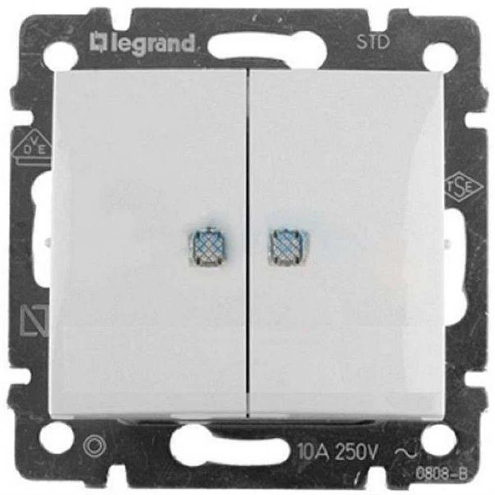 Выключатель двухклавишный с подсветкой VALENA для скрытого монтажа, номинальный ток 10 А, предназначен для управления двумя электрическими цепями. Встроенная подсветка служит для упрощения поиска выключателя в темноте.