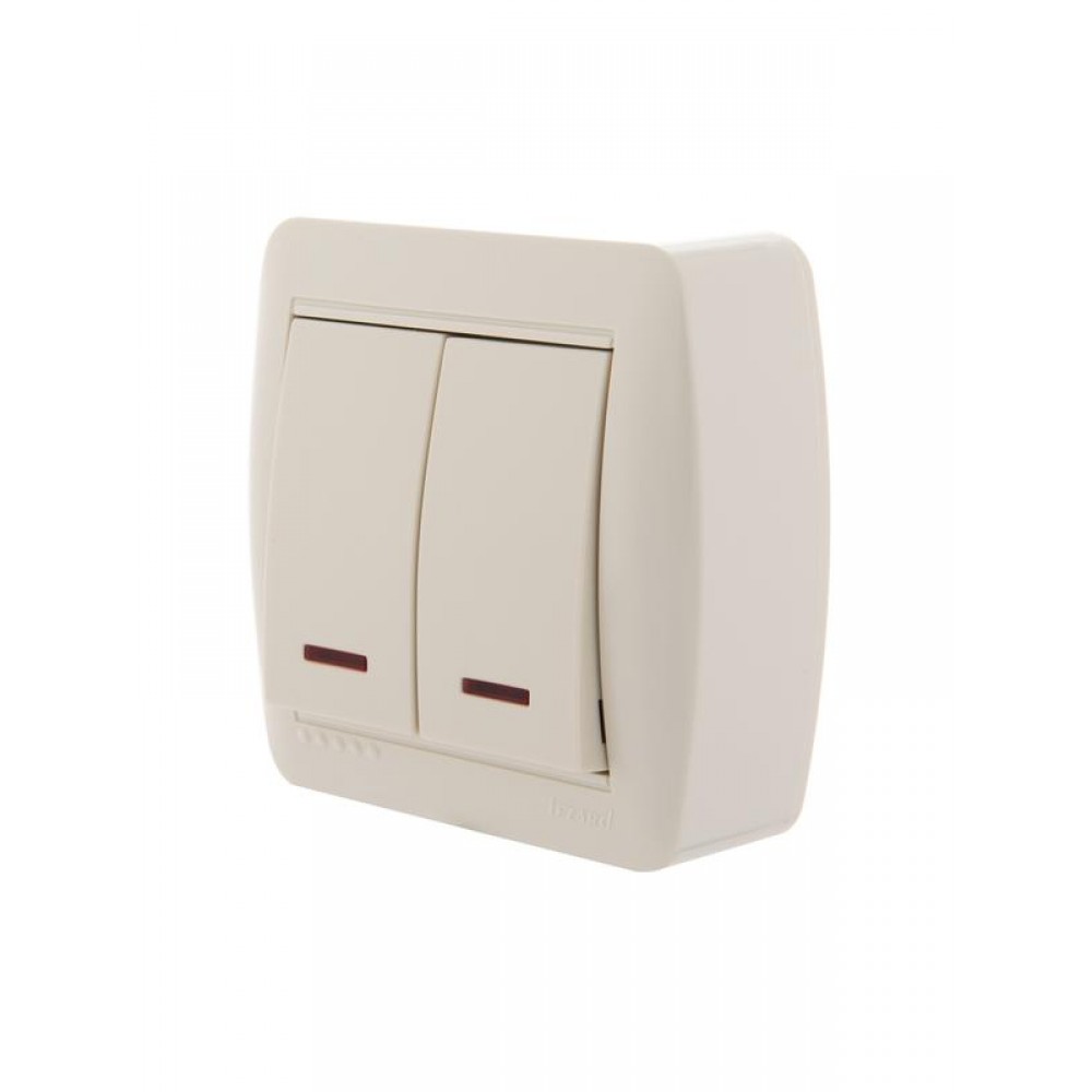Выключатель 2-кл. ОП Demet 10А IP20 с подсветкой крем. LEZARD 711-0300-112