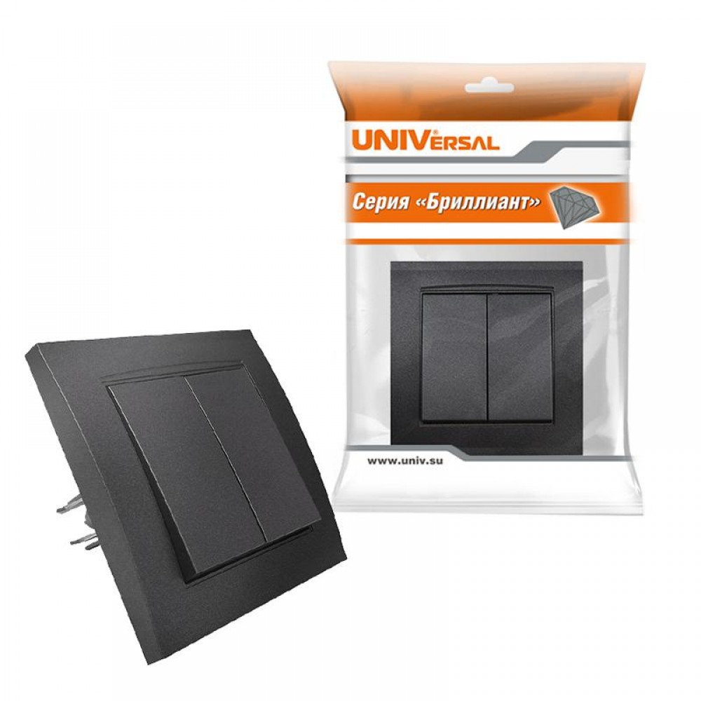 Выключатель 2-кл. СП Бриллиант 10А IP20 в сборе графит Universal 7947403-Gr 0 0 ₽